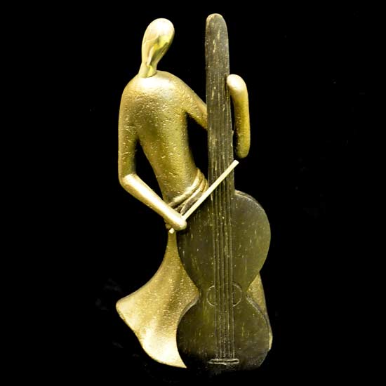 Highlighted is an elegant household decoration that is made of high-quality stone and aluminum materials. This stylish decoration depicts a beautiful musician playing a double bass. This fine decoration is a fitting gift for musicians.