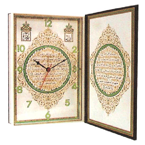 Showcased is a desk clock coming in a nice folding design. The clock features delicate patterns in a traditional Muslim style. The harmonic color combination exudes a sense of elegance.
