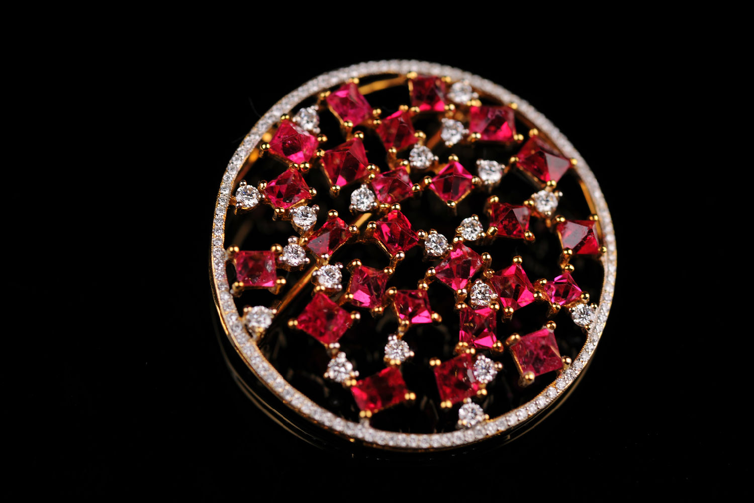 26 pieces of Myanmar Spinel and 132 pieces of Diamonds set with 18K yellow gold.