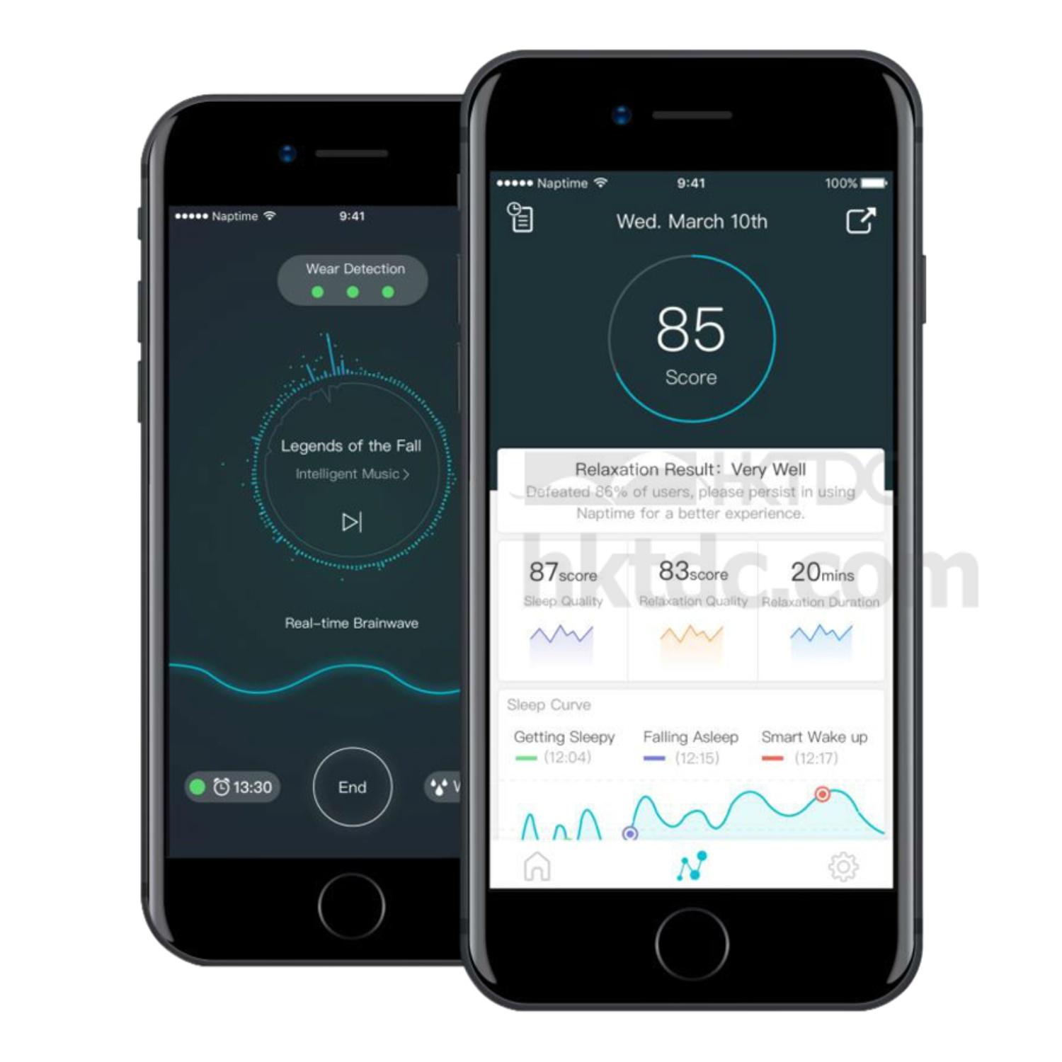 It utilizes EEG sensors and Machine Learning Technology to analyze your brainwave activity. It calms you down by pushing suitable music, keeps a peaceful sleep environment by intelligent volume control and wakes you up at the optimal time in your sleep cycle so you feel refreshed. Ready to tackle the rest of the day.