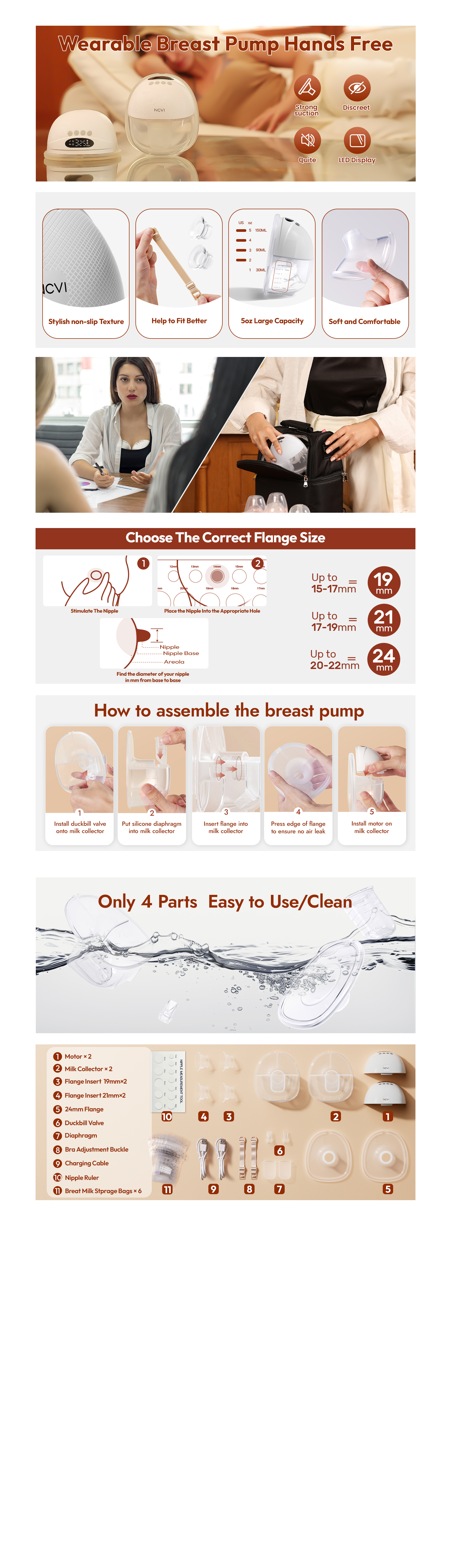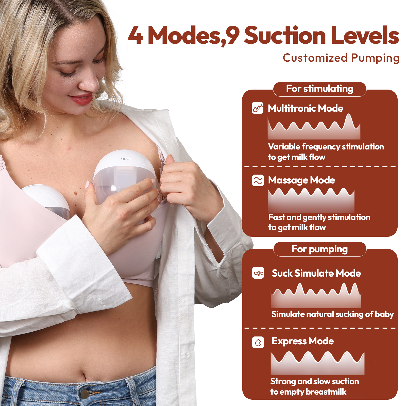 NCVI Electric Wearable Breast Pump Hand-Free Double & Single Featuring LED Lighting & PP Silicon Material for Baby Feeding