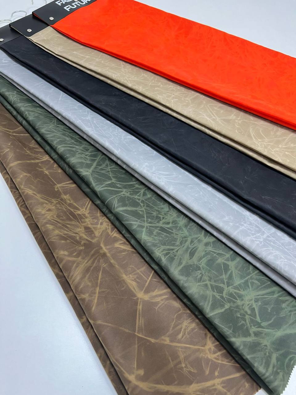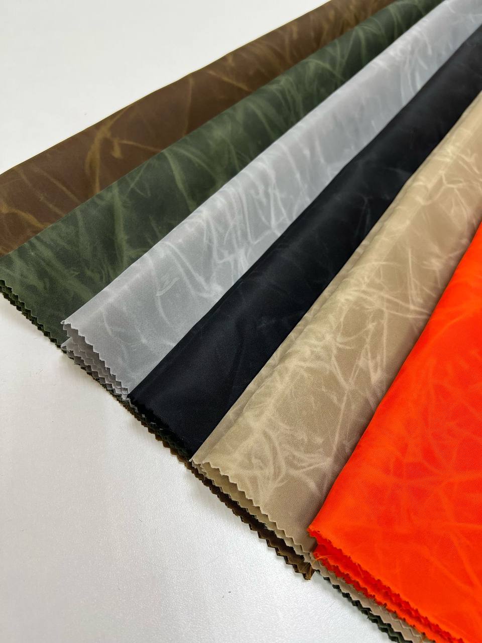 In addition to its excellent technical features, waxed nylon also stands out visually with its distinctive crinkled effect, giving it a bold and eye-catching appearance. This material is ideal for outerwear, accessories, or utilitarian fashion pieces where both durability and unique style are essential.