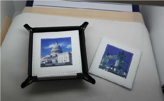 The square-shaped coasters feature durable and easy-to-clean PC material. The building add an exotic touch. Decorate and protect your desk surface with these adorable PU coasters.