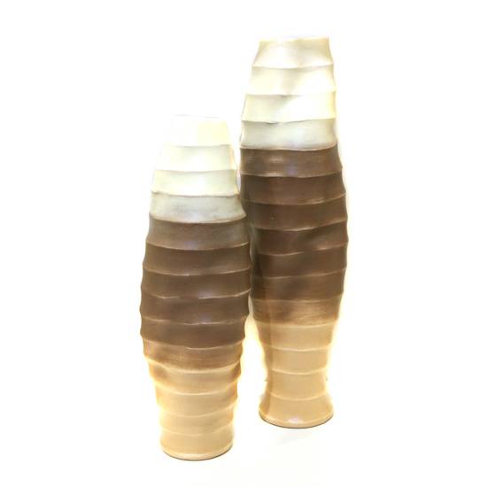 This is a Nepoleon vase decoration set with a simple but layered and irregular shape. They are made of Terra cotta, which is a clay-based unglazed ceramic.