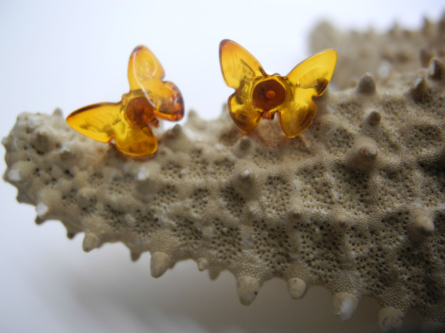 Natural Baltic amber earrings "Buterflies" with sterling silver 925 stud.