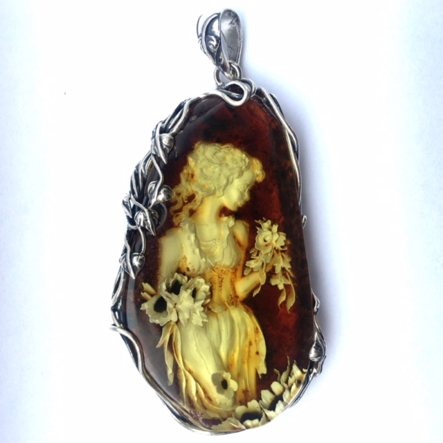 Natural Baltic Carved (Cameo) Amber Pendant