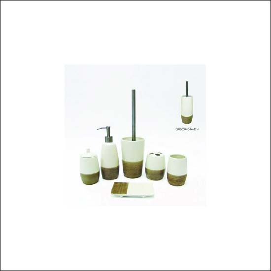 The accessory set include a toothbrush holder, a towel hanger, a pumper, and soap holder