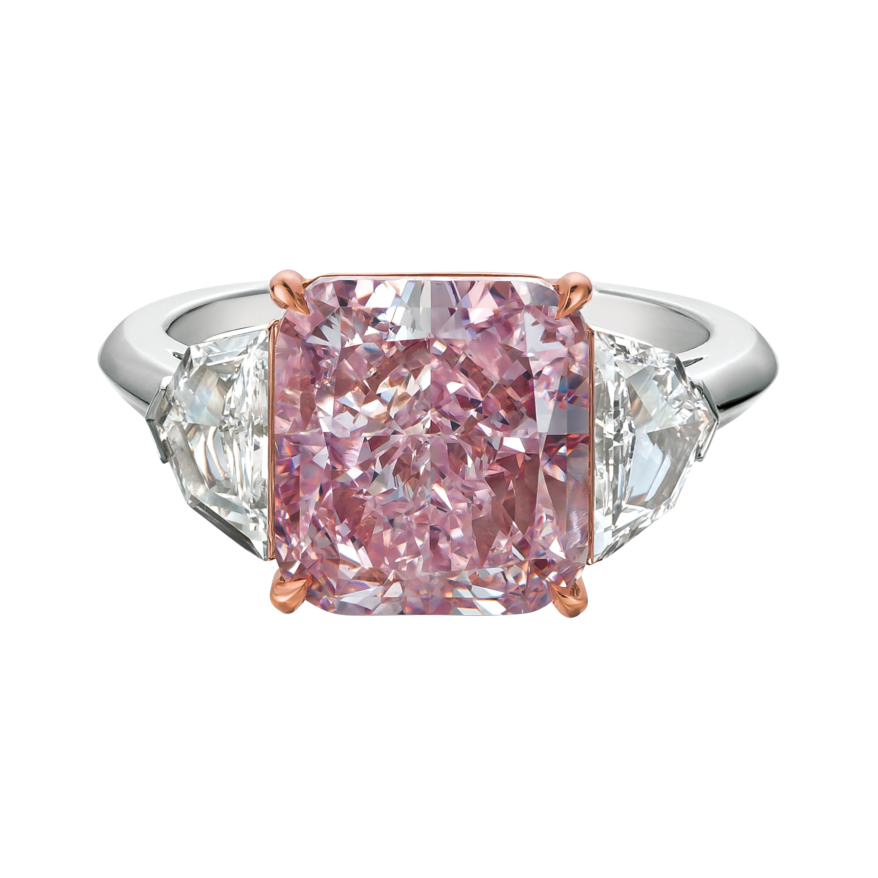 Scott West - over 6 carat fancy purple pink diamond GIA accented by two white diamond shields at a total weight of 0.92 carats set in platinum and 18KG.