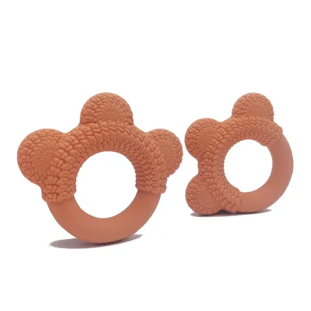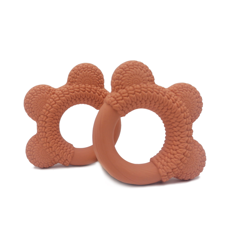 Natural Rubber Latex Baby Teether with Rattle Features Rattle Sound Two Rings and Raised Texture to Soothe Gums
