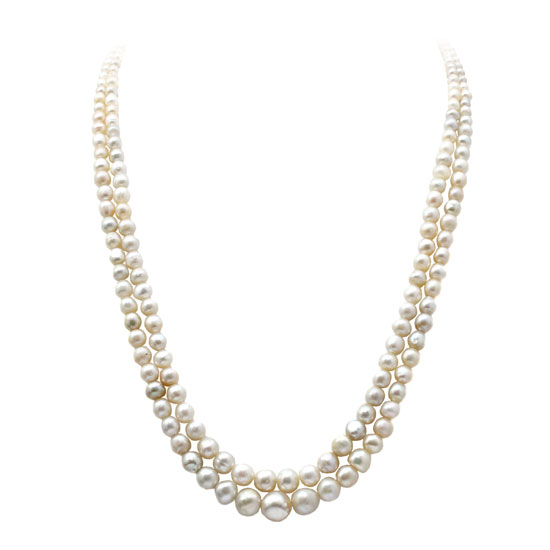 This is a necklace that comes with a magnificent pair of natural saltwater pearl chains. Each pearl comes in a round shape with a smooth and glossy finish. This necklace will add a touch of elegance to your look.