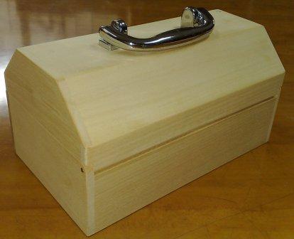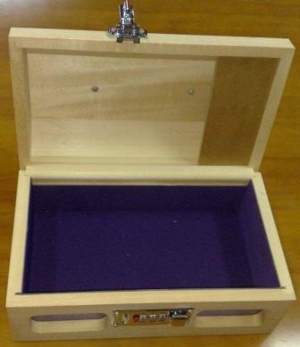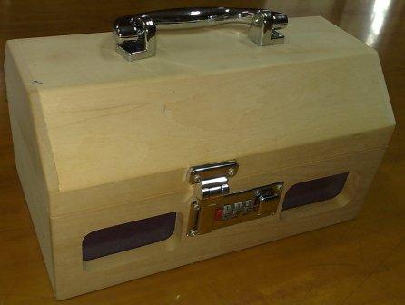 The natural wooden box has a handle and lock. the customer can draw / create her own design on the box.