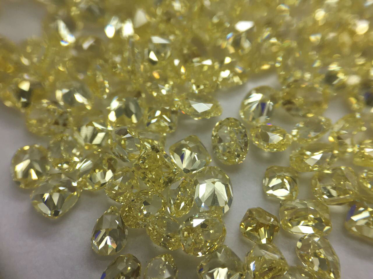 We have 10 pointers to 70 pointers parcel goods in fancy light yellow. fancy yellow and fancy intense yellow with good cutting and polish.