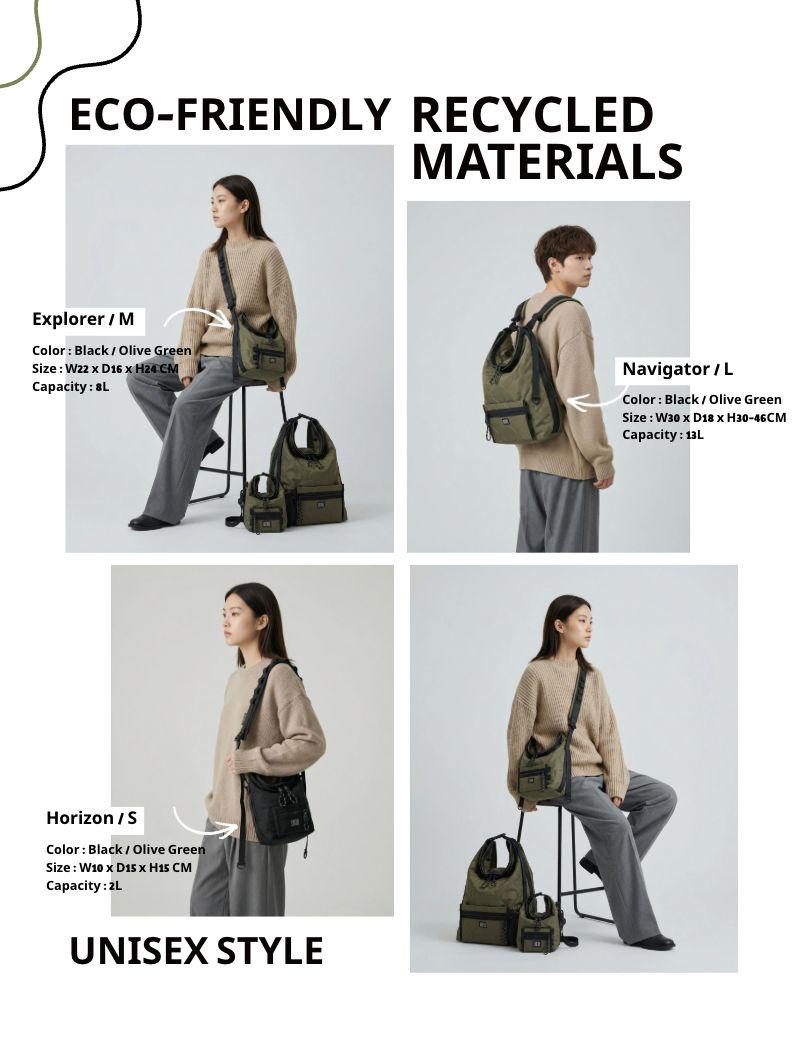 - 永續時尚理念:面料選用 100% 環保再生滌綸(Recycled Polyester),兼具防潑水與耐磨性能,為地球盡一份力。