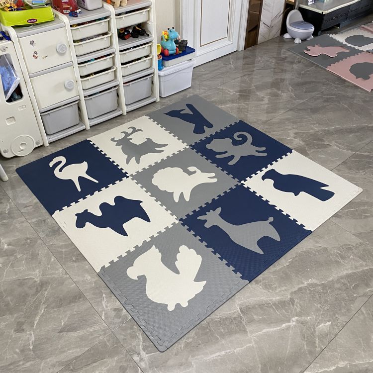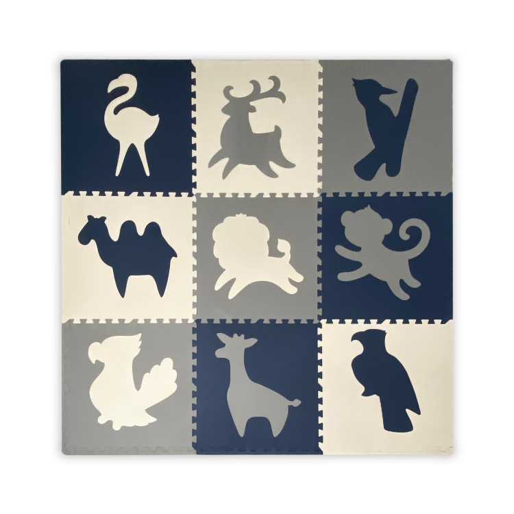 Navy Animal Interlocking Play Mat - Kid-Safe Non-Slip Easy-Clean Toddler Crawling Mat