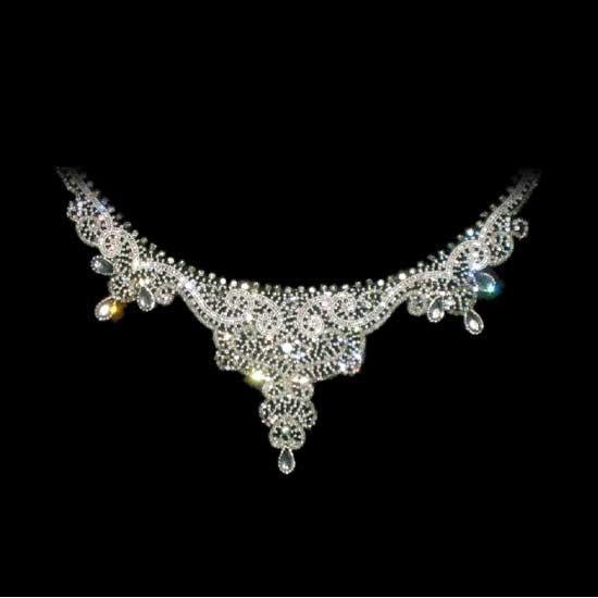 This beautiful neck piece is embroidered with stones, beads and silver Lurex yarn. It is also available in a wide array of beaded and sequenced designs with various embellishments and trims. Our products are designed in compliance with latest market trends for the fashion conscious clients.