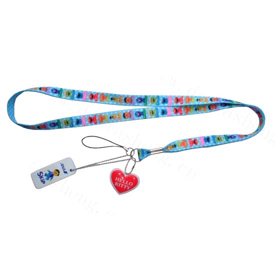 This neck strap comes with hot-stamped patterns, offering a special design. The rich style comes with pendants in various shapes. A phone lanyard is also included. It makes an ideal corporate gift.