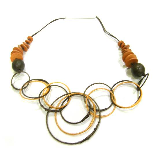 This hand made necklace features with black and yellow circle decorations. This fashionable necklace is easy to mix and match with your clothes. Moreover, it is an ideal gift for all girls.