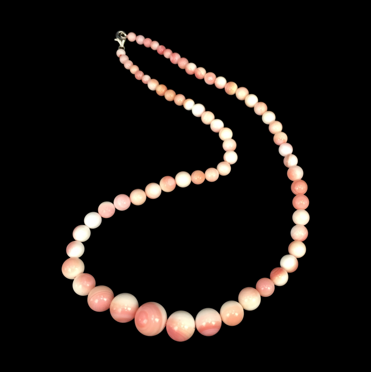This is a fascinate necklace ,very nice color,used natural pink shell for make, no dyeing, just selection AAA quality , the size from 5mm-12mm, we call big to small ,or echelonment necklace