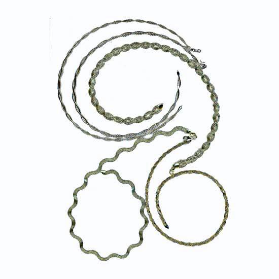 This set of gorgeous jewelry includes four necklaces with silvery constructions. They feature braid, sleek and wavy designs for a hint of elegance. This set of stylish necklaces is suitable for special occasions.