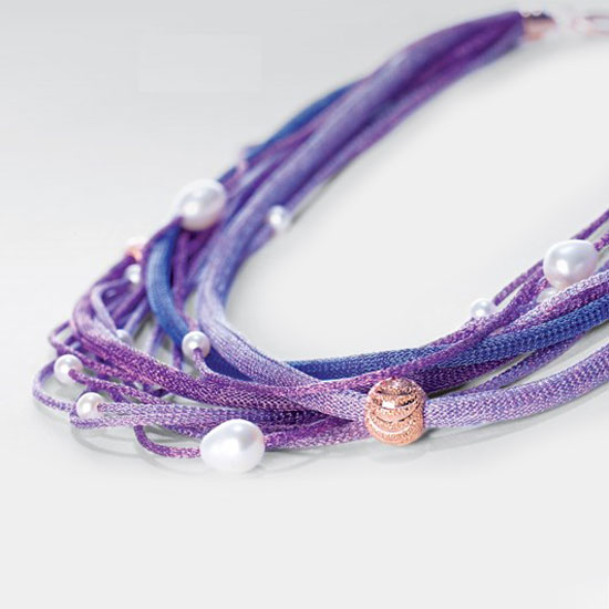 This collection represents our flagship regarding our capability to innovate jewelry with new materials. A charming interlacing of worlds wrapped in their shining wakes that form glittering galaxies which are made with silvered and enameled copper beads, sterling silver beads, and freshwater pearls. This collection is made by hand in our factory based in Verona, Italy.