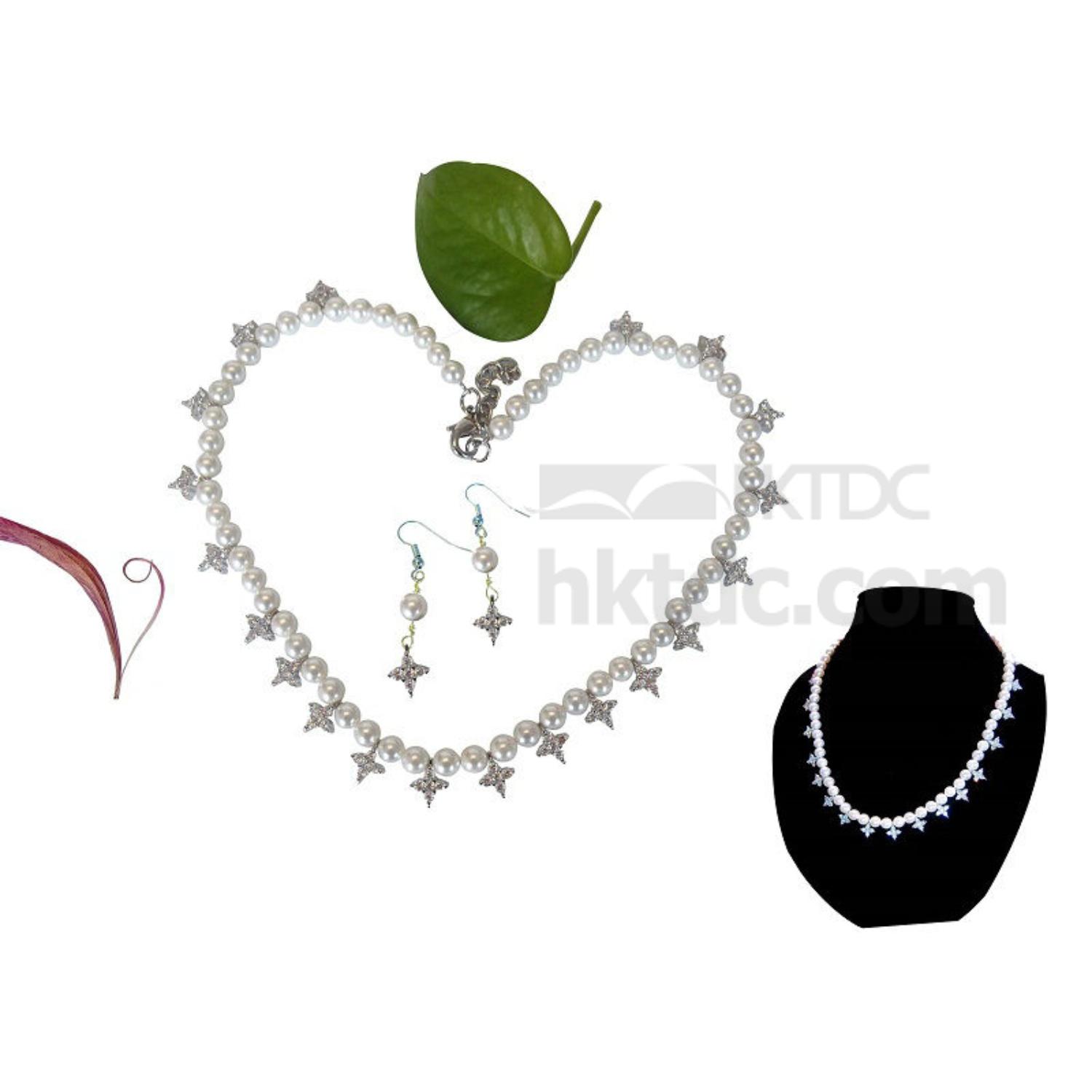 1.Classic Diamond Pearl necklace earring jewelry set JSK059