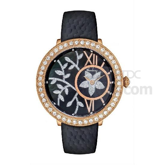 - mother-of-pearl dial embellished by glittering leaves and snowflakes pattern