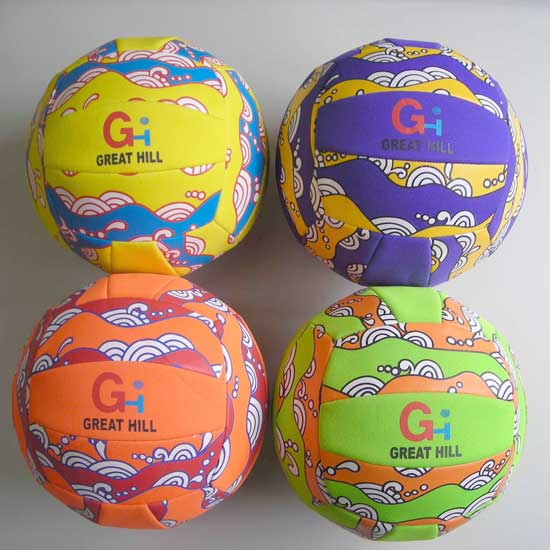 The showcased neoprene ball comes in vivid colors with sea wave prints. It is machine-stitched and inflatable with a bladder. There are different colors for customers to choose from.
