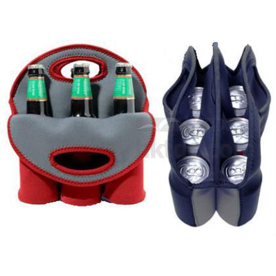 The totes can hold both bottles and cans, since the neoprene pockets are stretchy, and the ergonomic handle makes the holders to carry if you want to take it to a ballgame or on a hike.