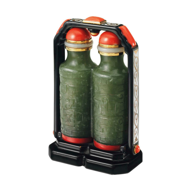 Nephrite and Gemset Scent Flask Set