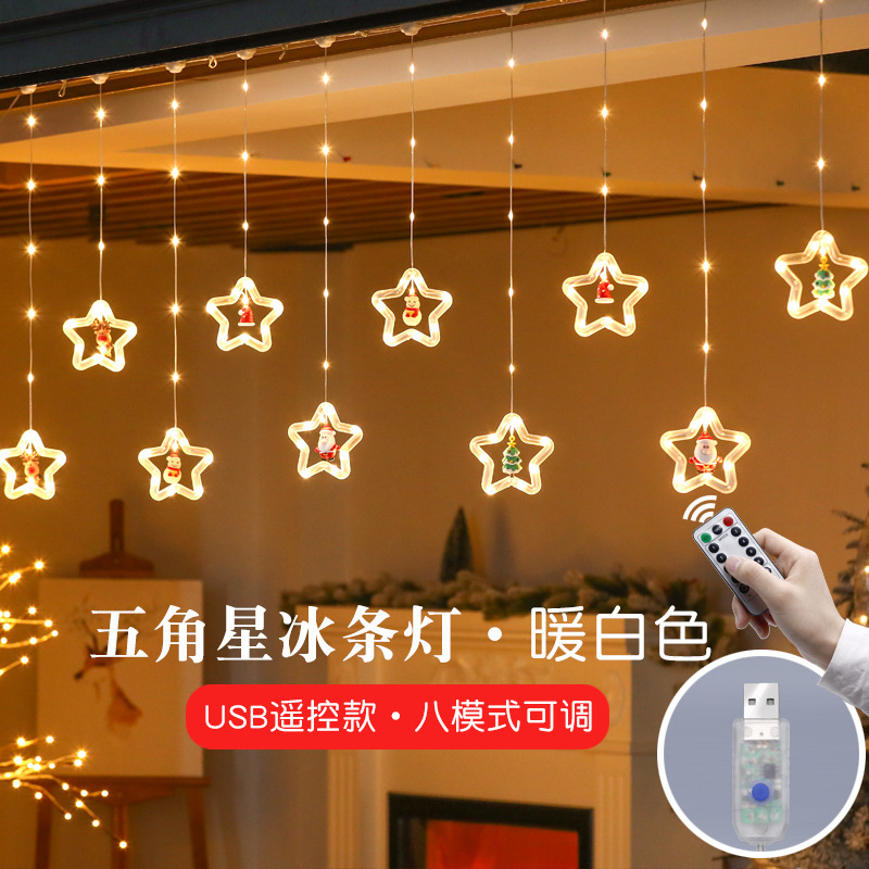 New Christmas String Ring Curtain Light Star Modeling String Light LED Color Light Room Decorated with Ice Strips