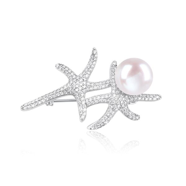 New Design Freshwater Pearl Sterling Silver Starfish Brooch