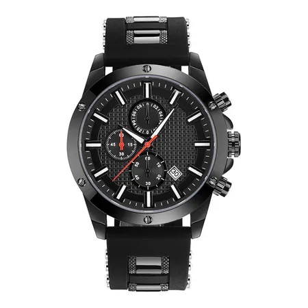 New Fashionable Luxury Men Silicone Strap Watch Alloy Calendar Quartz Wrist Watch For Men