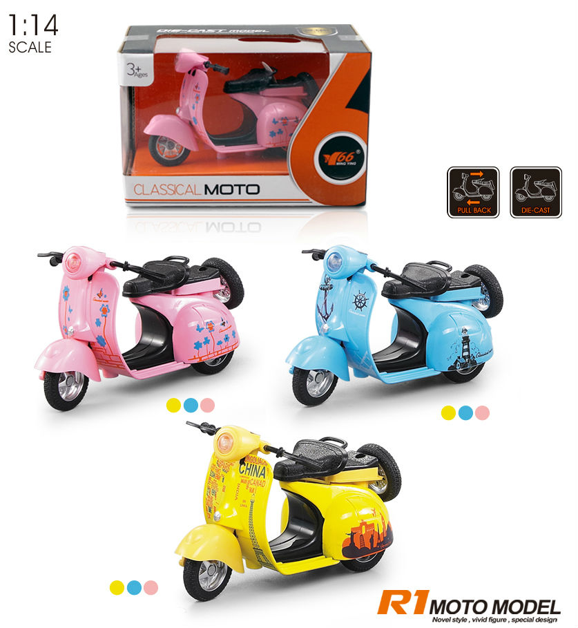 New Items 1:14 Scale Pull Back Die Cast Motorcycle Mini Scooter