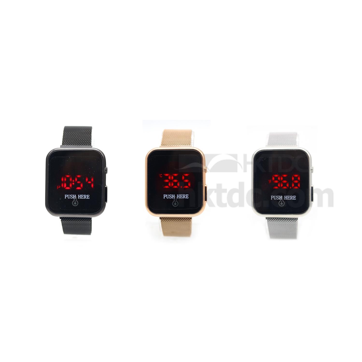 New silver square LED thermometer watch with stainless steel magnet mesh strap