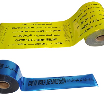 • Nicelife Al foil underground detectable warning tape is not only bright in color, even in thickness but also neatly cut and with very strong tensile property. It has the metal detectability function. Generally, it is paved on the underground pipelines and used to remind constructors of the right position of the pipes. It’s an effective way to avoid damage or breaking to pipelines due to malposition during the process of construction.