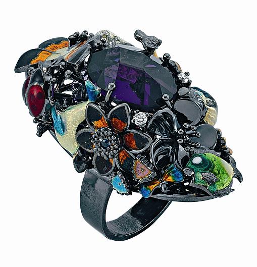 Middle circle design: Semi-precious coloured stones with a diamond at the centre