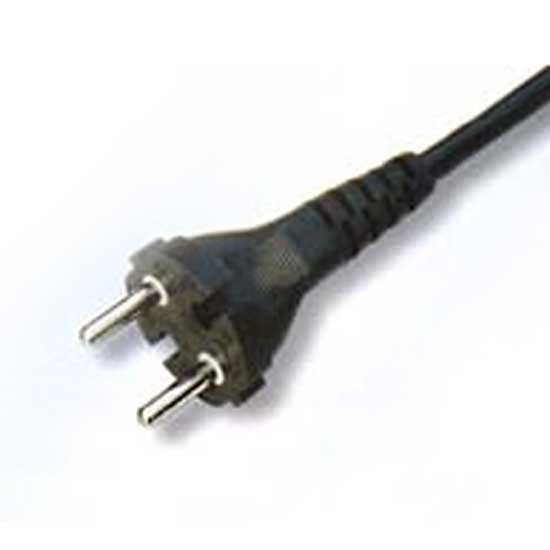 Presented here is a non-rewirable plug without an earthing contact. It features a two-pin connector design. This non-rewirable plug is commonly used in power tools and home appliances.