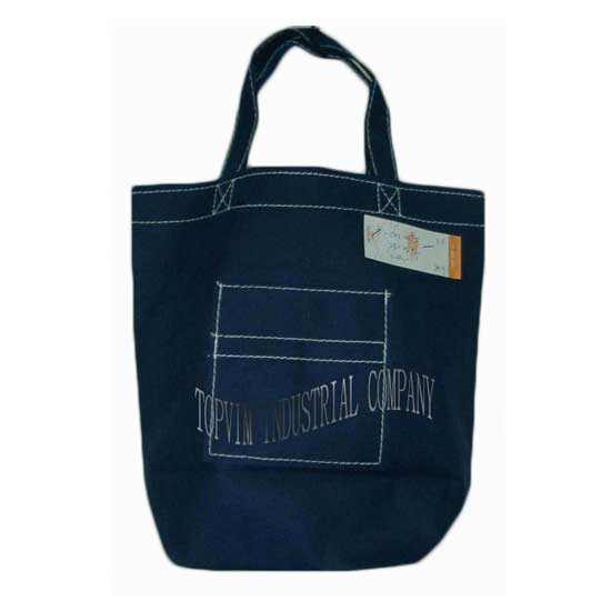 Displayed here is a non-woven bag in a navy blue color. It comes with contrast stitching for added style. Go shopping with this non-woven bag.