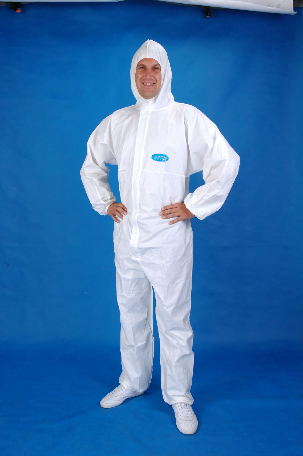 coverall with seam bonding (heat sealed) with hood, #3 plastic zipper with zip
