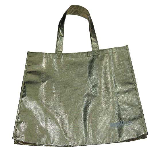 Featured is a non-woven shopping bag in a plain design. The body is metallic-laminated for an eye-catching and sleek appearance. The handles are robustly fixed to ensure high durability when carrying.