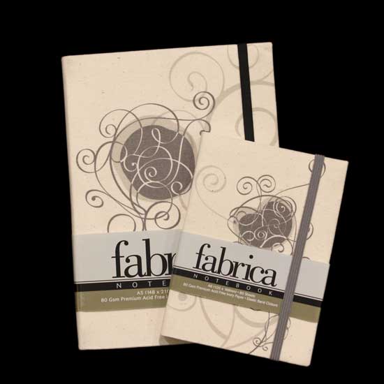 This charming note book is designed with a decorative fabric cover. The gray floral patterns echo the gray elastic band detail. Designs in two sizes are available to suit your different needs.