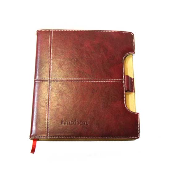 This classy notebook cover in brown is made of PU for a luxurious touch. The neat and elegant stitches in white highlight the look easily. This noble PU notebook cover makes a great complement to your notebook design.