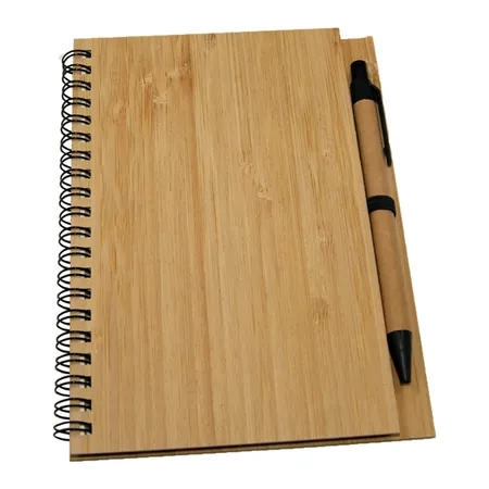 This spiral binding notebook with bamboo cover and bamboo case ballpen, it is easy to carry also suitable for big size LOGO printing.