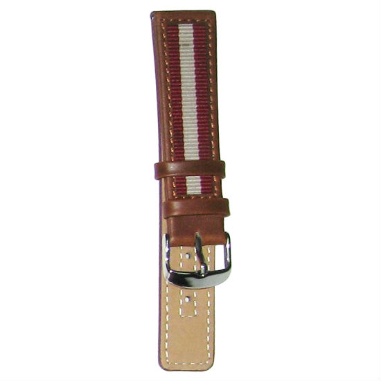Showing is a tasteful and classy leather watch strap which comes with a brown-tone body and red-and-white-tone nylon detailing. Crafted from sturdy material with exquisite workmanship, this premium watch strap provides a sense of comfort and durability.