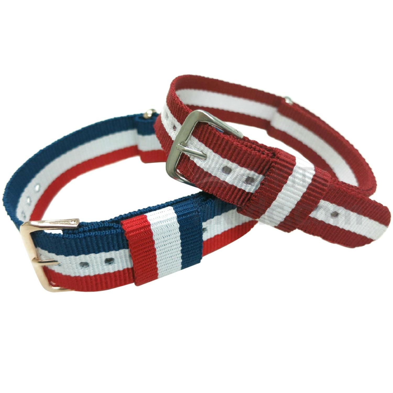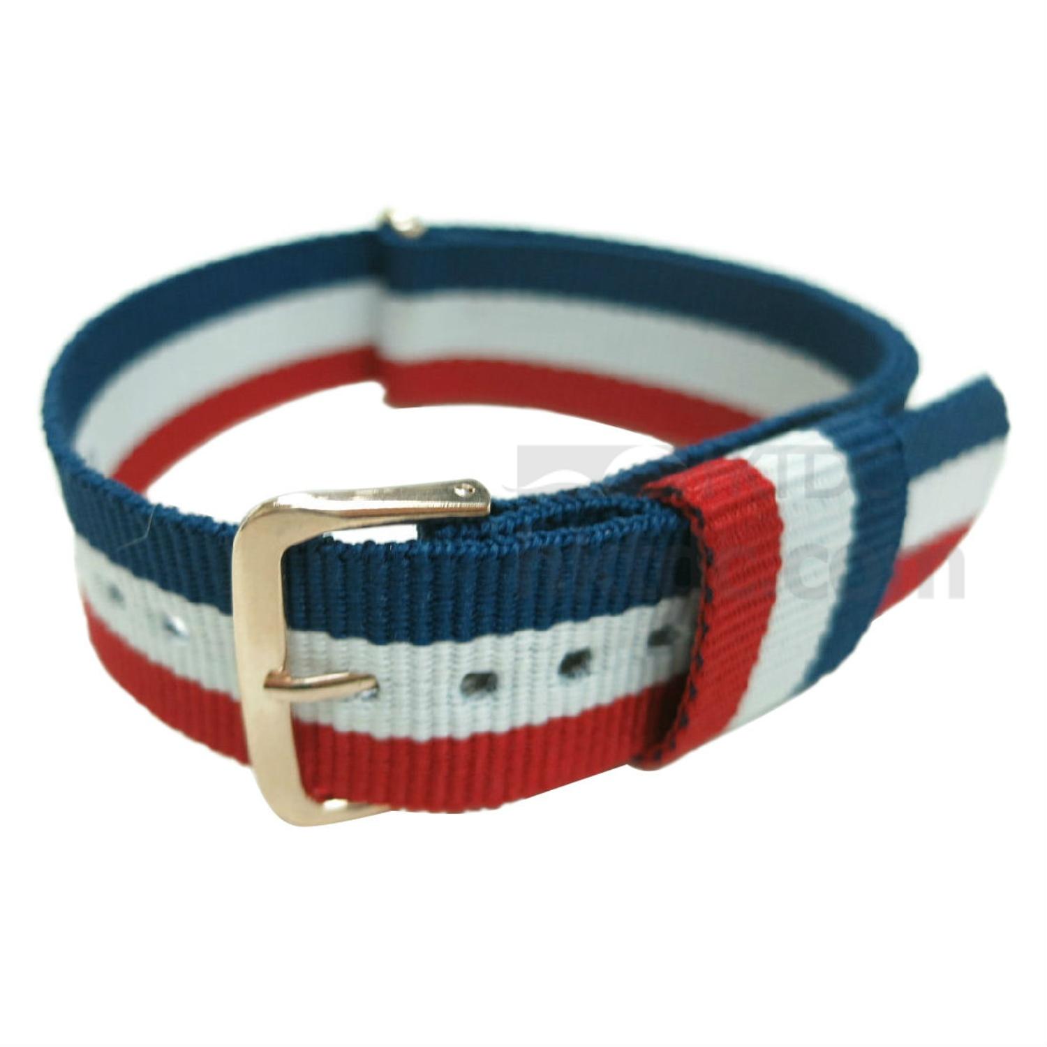 The triple-color appeal of this nylon watch strap takes the center stage and acts as the perfect accompany to a wide variety of dials. Receiving a thin profile with several punched holes for size adjustments, it features a gold-plated buckle finish and a thick free loop.