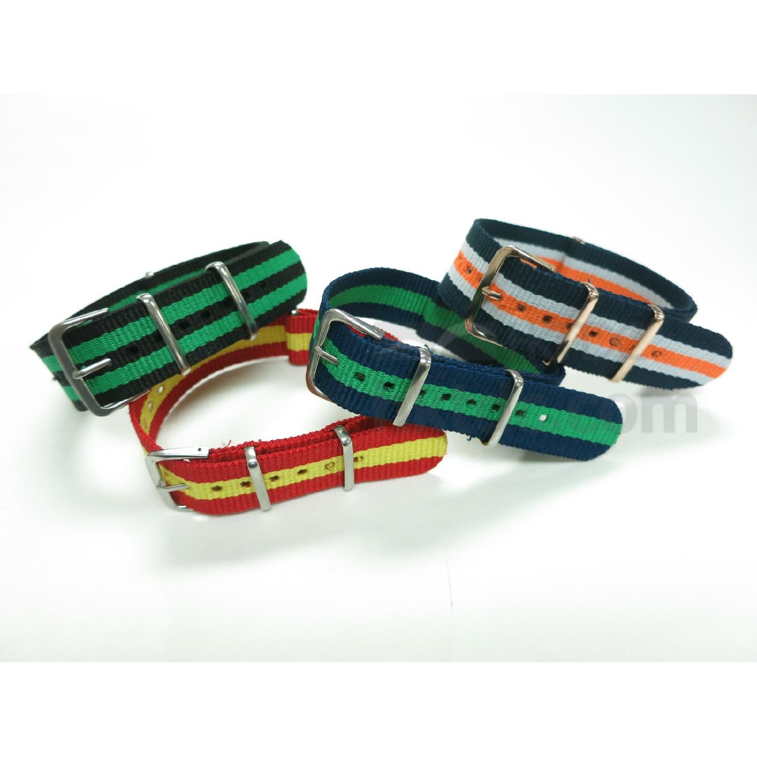 The striped pattern design of this nylon band gives your timepiece a versatile element to fit your everyday move. Coming in a twin-hue construct with an elegant round tip finish, it impresses eyes and secures on your wrist using its stainless steel buckle create.