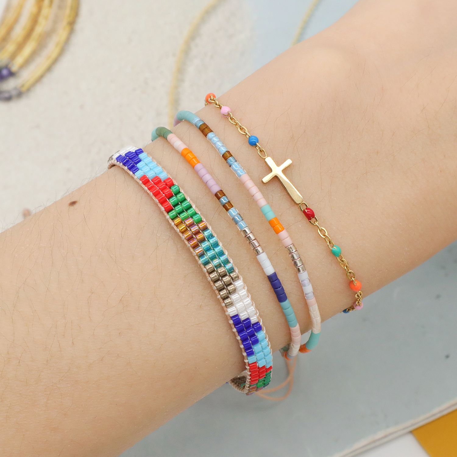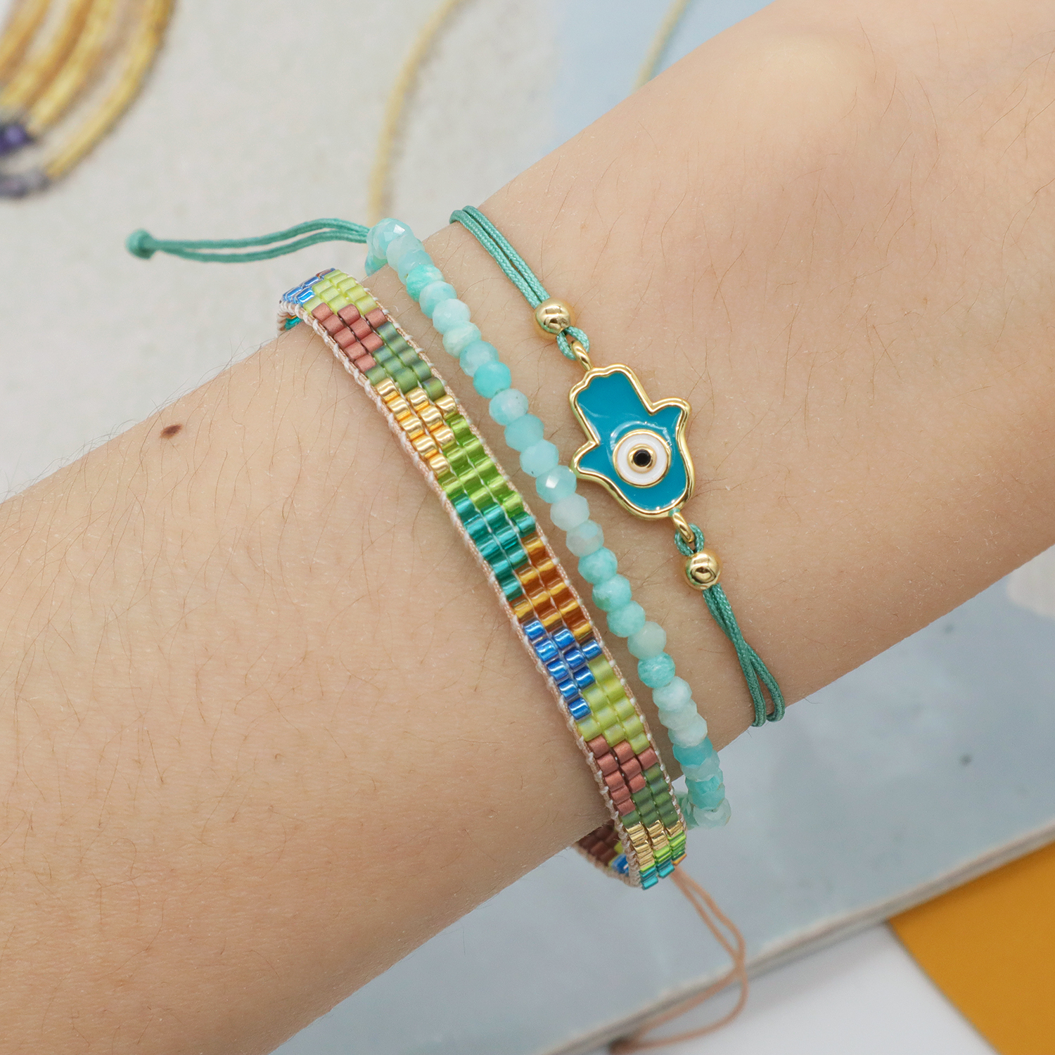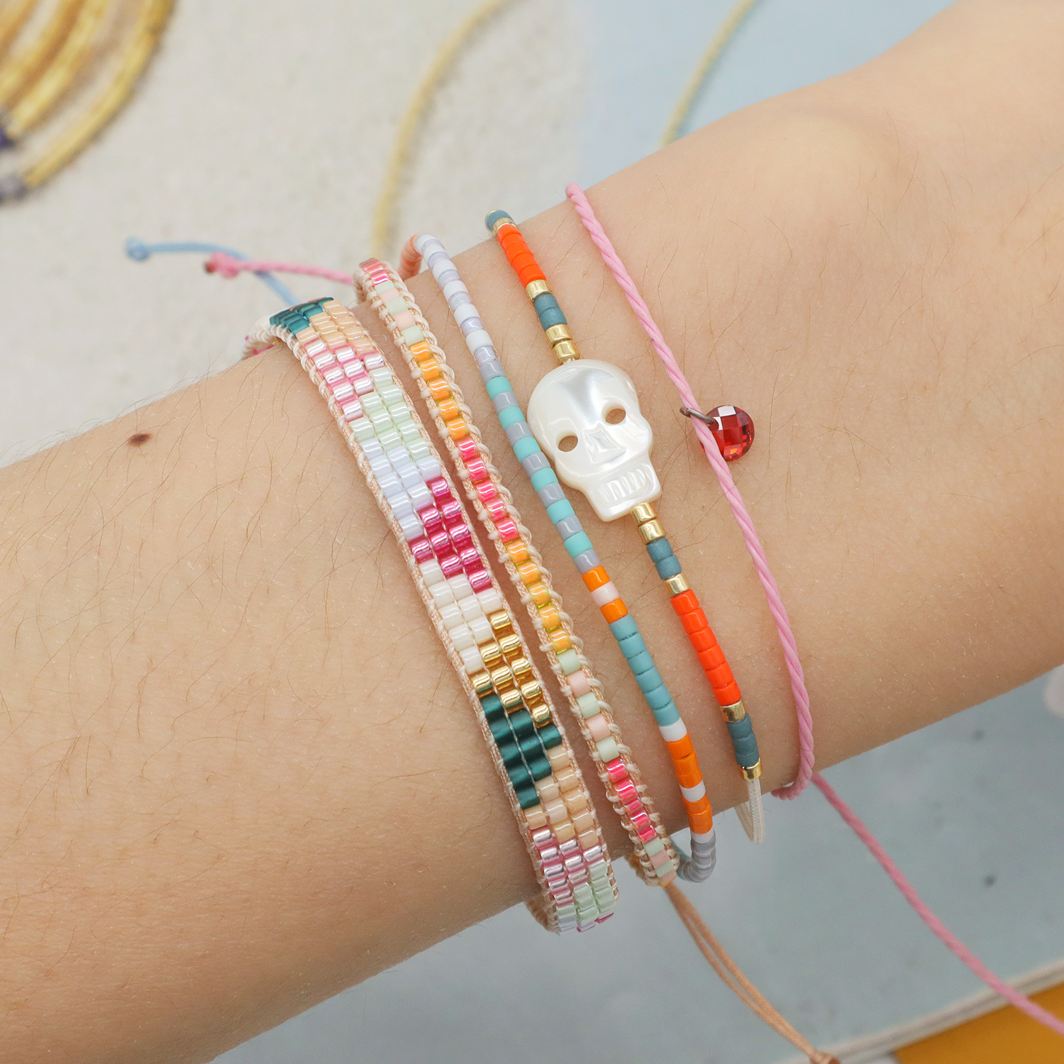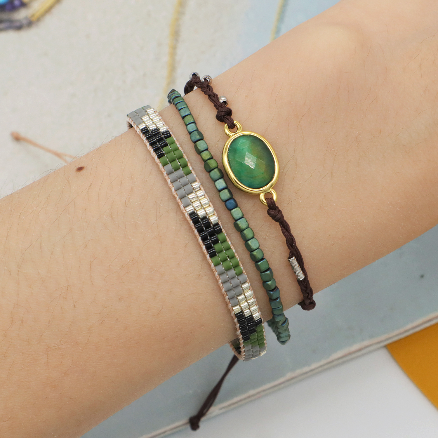OEM Custom Adjustable Woven Miyuki Beads Handmade Braided Woven Macrame Bracelet