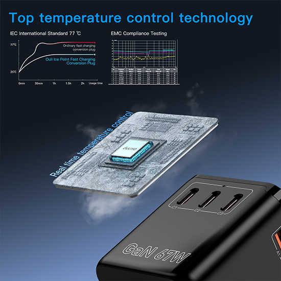 • 1. * * Power output * *: Clearly labeled as 67W, it means it can provide relatively high charging power and is suitable for various electronic devices such as smartphones, tablets, laptops, etc.