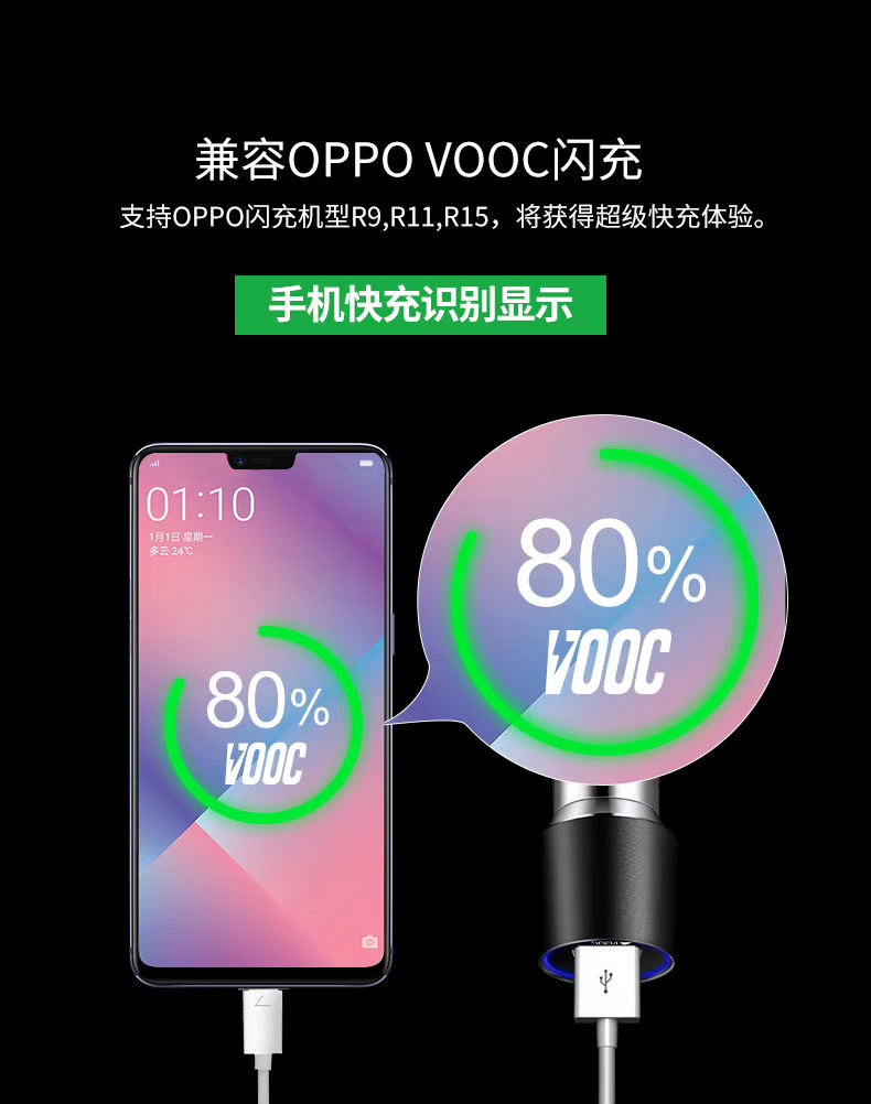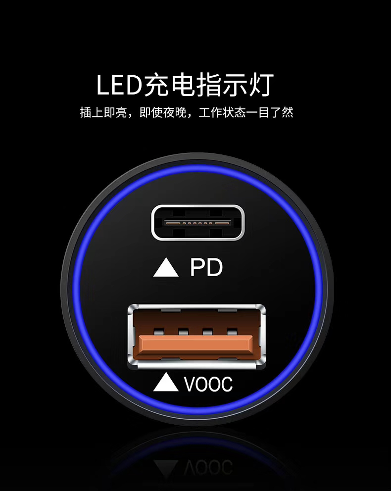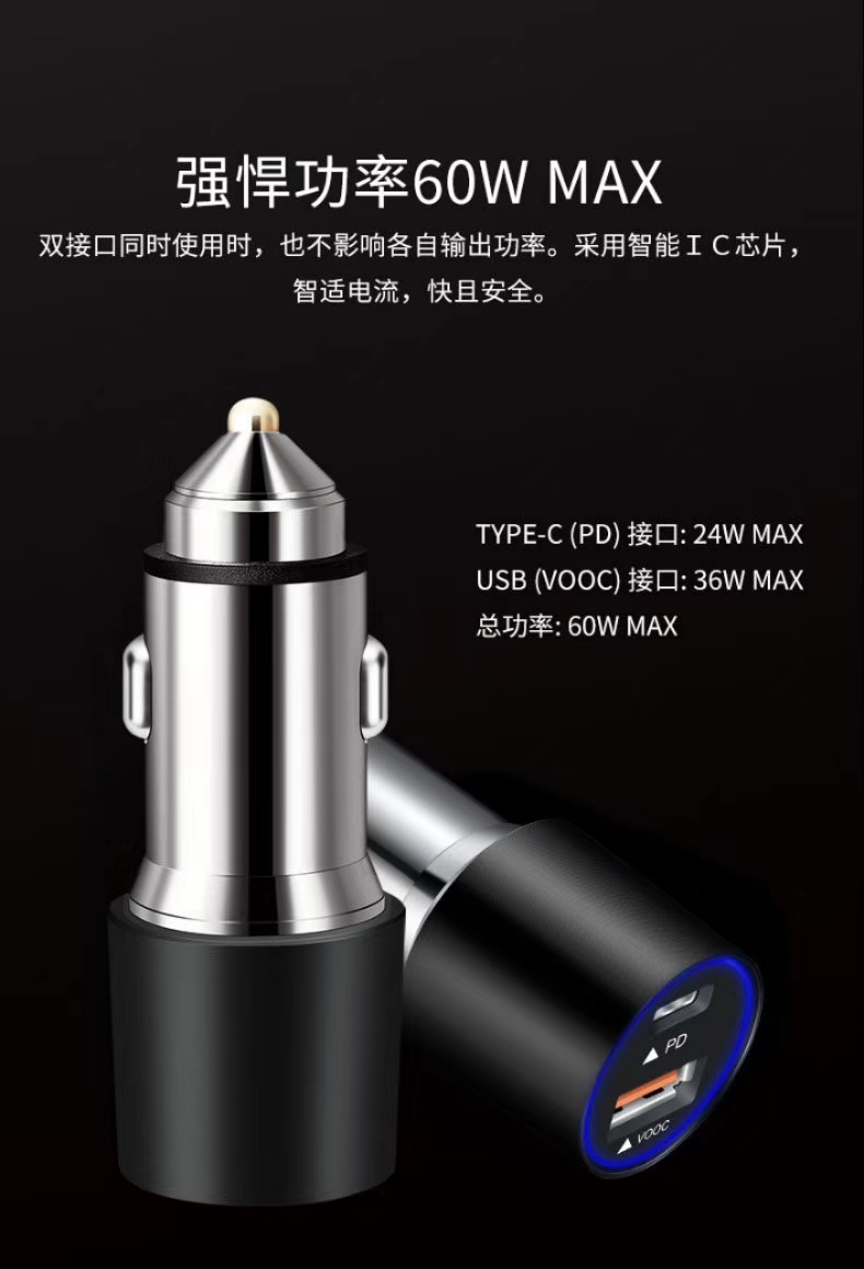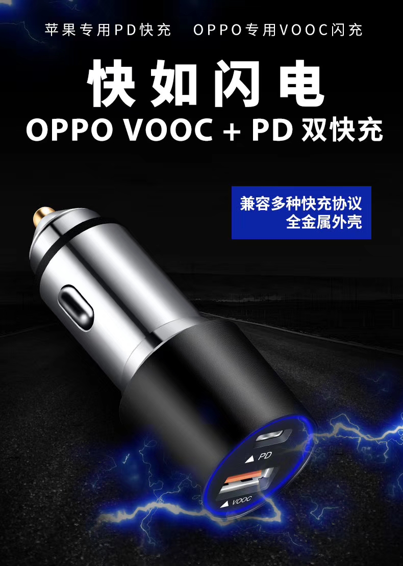 OPPO VOOC 36W +PD24WHigh power car changer for mobile phones