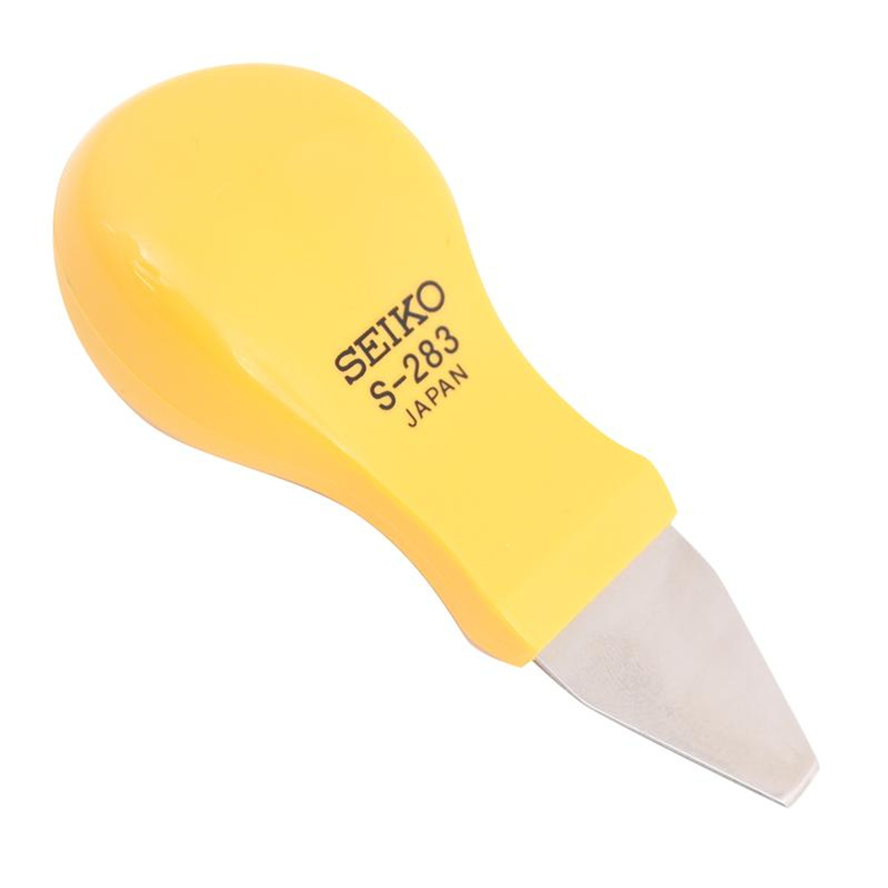 The Seiko S-283 professional watch case back remover tool is made in Japan using the highest quality materials. The case knife is designed for better control and power over standard case knifes or pry type case back openers. This tool is used to pry open snap on, friction type watch case backs. The case back remover and opener features a stainless steel blade that is designed for strength and durability, the blade measures 5mm wide and has a sharp beveled edge to get into the tightest of watch backs while still having the strength to hold up to multiple uses. If you work on watches regularly this is the case back tool you want! Made in Japan.